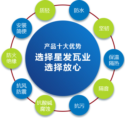 公司主要產品有《星發(fā)牌》合成樹脂瓦、APVC防腐耐候復合瓦、APVC發(fā)泡隔熱瓦、PVC半透明瓦、PVC防腐隔熱瓦、PVC防腐瓦、PVC防腐平板、PVC條紋板和ASA/PVC超耐候復合瓦等產品。產品一經推出,已被廣泛應用于國內各類平改坡項目和大型工業項目,遠銷歐洲、亞洲、美洲和非洲等國外市場,還獲選為廣州亞運會、深圳大運會、四川災后重建等工程項目的應用產品。公司在不斷創(chuàng)新和改革的基礎上,力求以更好的產品、優(yōu)良的服務,用心、專心服務好每一個客戶。